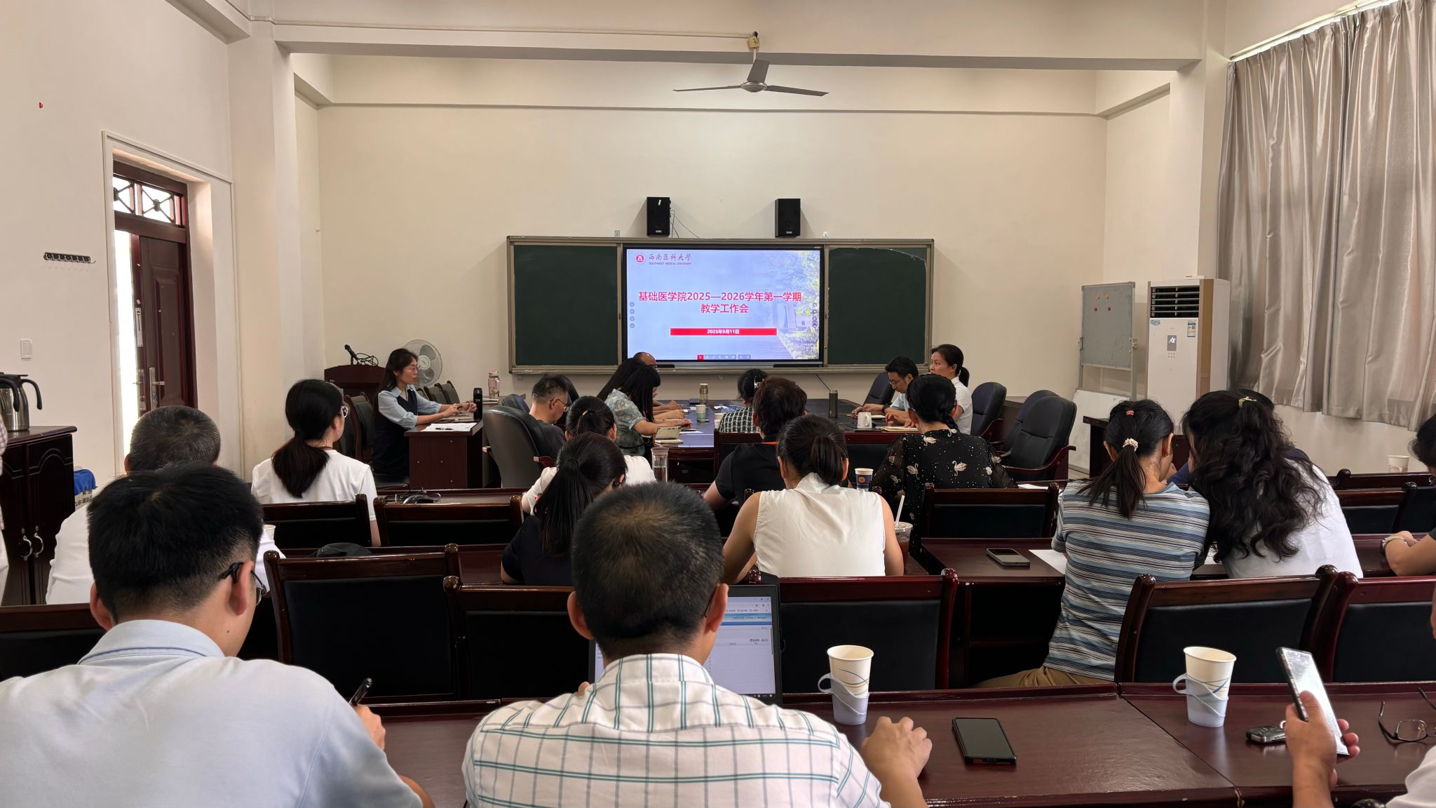 9月11日下午,基础医学院召开了2025-2026学年第一学期教学工作会。基础医学院院长谭晓秋、分管教学副院长曾永秋、各教研室及实验室主任、副主任、教学秘书、教务科负责人及相关人员参加了此次会议,会议由曾永秋主持。