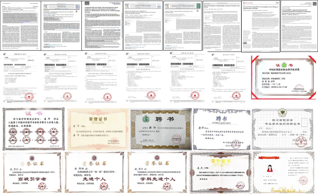 唐华:教授,博士后导师,硕士研究生导师,病理生理学教研室副主任。学术兼职:国家自然科学基金同行评议专家、中国生物信息学学会(筹)生物医学数据挖掘与计算专委会委员、中国医药教育协会智能心血管病学专委会委员、四川省生物信息学会常务理事、四川省医学会数字医学会专委会委员、iMeta杂志青年编委以及Current Gene Therapy 杂志编委。人才称号:四川省海外留学高层次人才,四川省学术和技术带头人后备人选,泸州市学术和技术带头人。研究成果:主持国家自然科学基金2项,省部级课题及厅局级课题多项。申请国家发明专利6项。获得中国医药教育协会科学技术奖二等奖。受邀在中华医学会数字医学年会、全国生物信息学与系统生物学大会、中国智能心血管病学发展大会等会议上做学术报告。在Information Fusion、Npj Digital Medicine等期刊发表SCI论文50余篇,ESI高被引论文4篇,累计他引4493篇次,H指数(Google scholar)31。教学成果:承担本科生和留学生《病理生理学》《基础医学导论》《科研方法导论》《Pathophysiology》等课程,指导本科生获省级大创项目4项。研究生招生专业:病理学与病理生理学(100104),生物技术与工程(086001)。