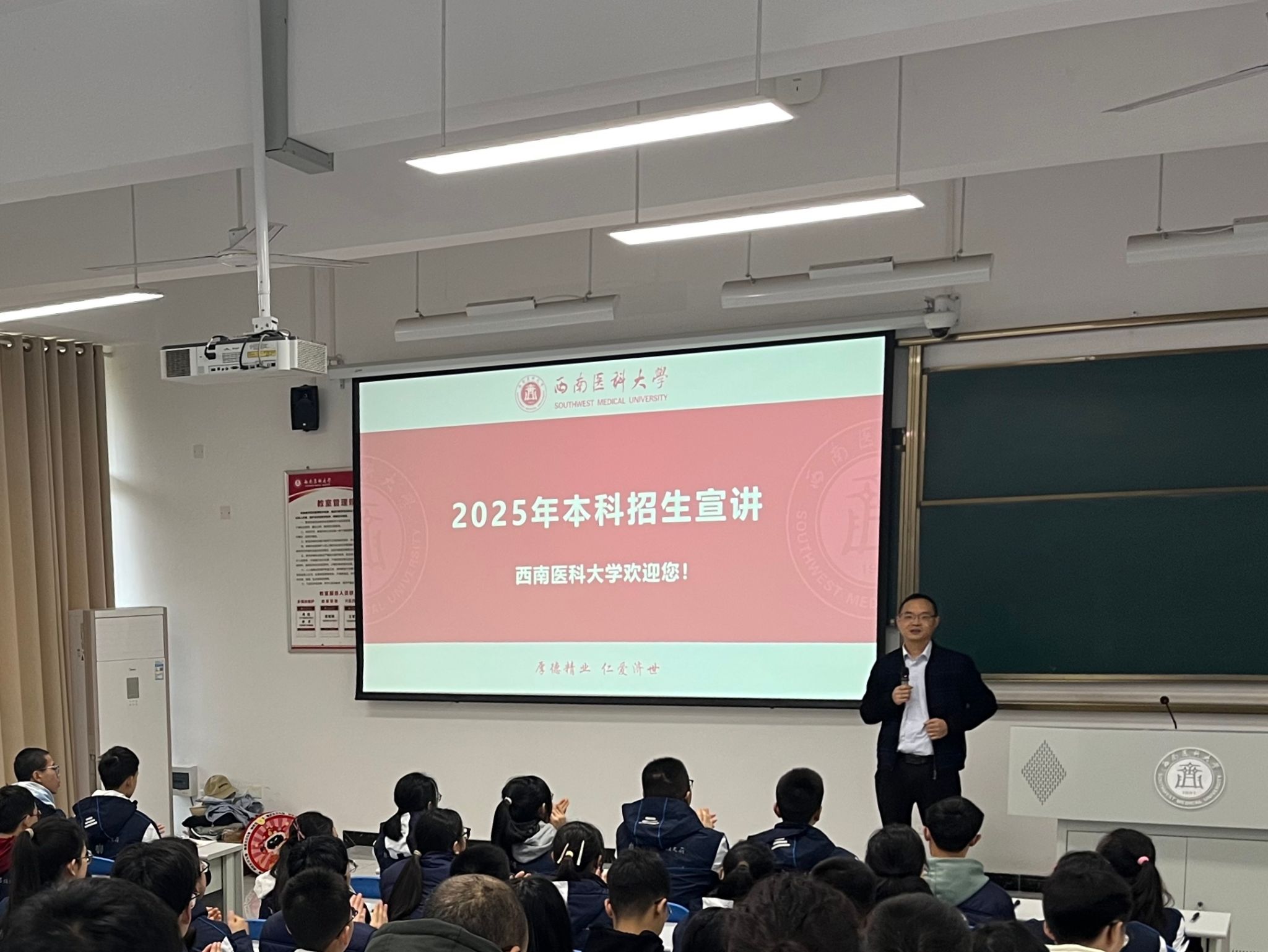 11月23日上午,泸州老窖天府中学师生代表来到西南医科大学城北校区开展参观交流活动。此次活动由我校学生工作部与泸州老窖天府中学共同主办,基础医学院协办,旨在增进高中学生对医学专业的了解,拓展知识视野,建立初步职业规划,搭建高校与高中育人衔接的桥梁。