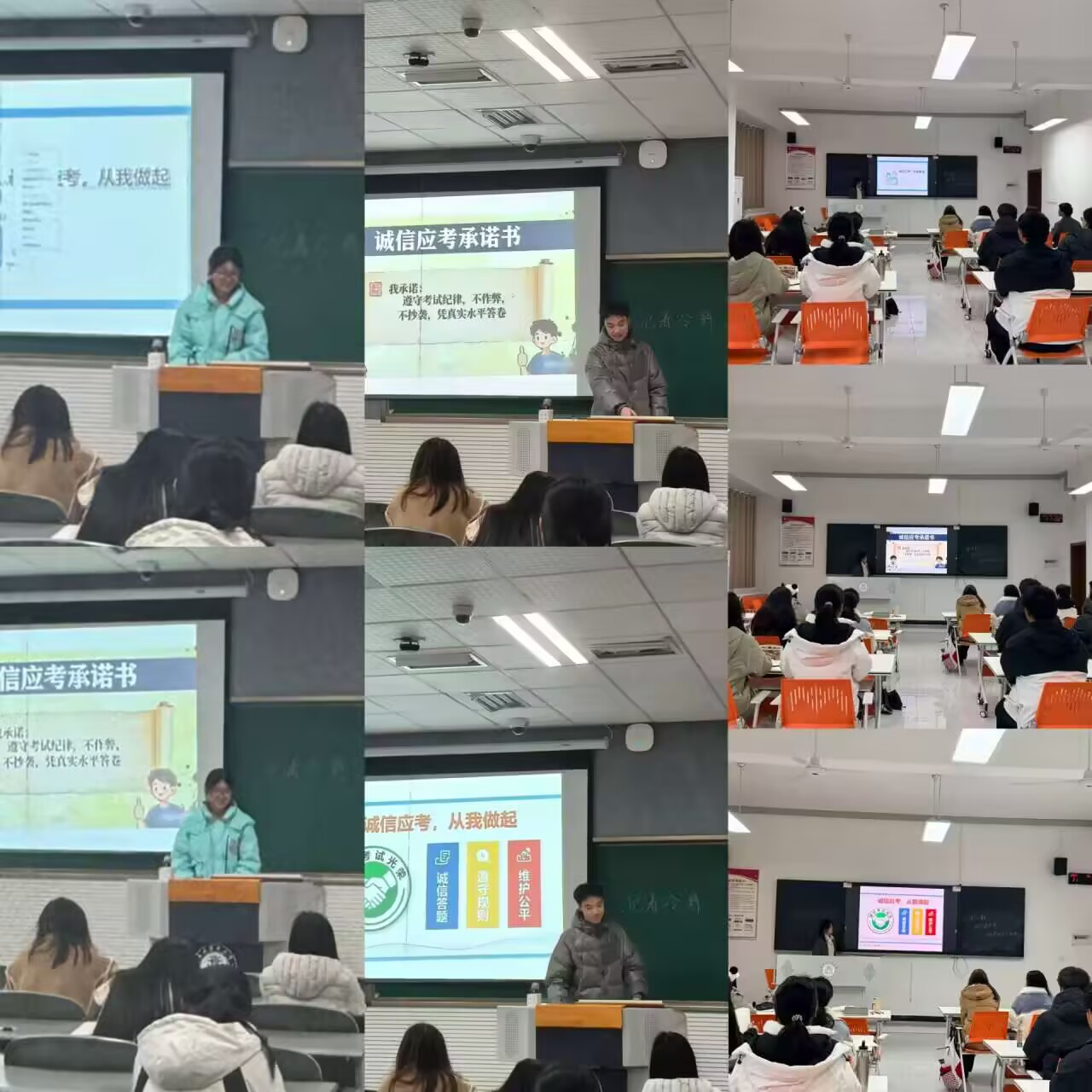 期末考季临近,为筑牢学术诚信防线,营造公平公正的考试氛围,引导学生树立正确的考试观念,基础医学专业22级至25级各班级集中开展“诚信应考”主题班会。本次班会以强化纪律意识、培育诚信品格为核心,通过多维形式让诚信应考的理念深植每一位学子心中。
