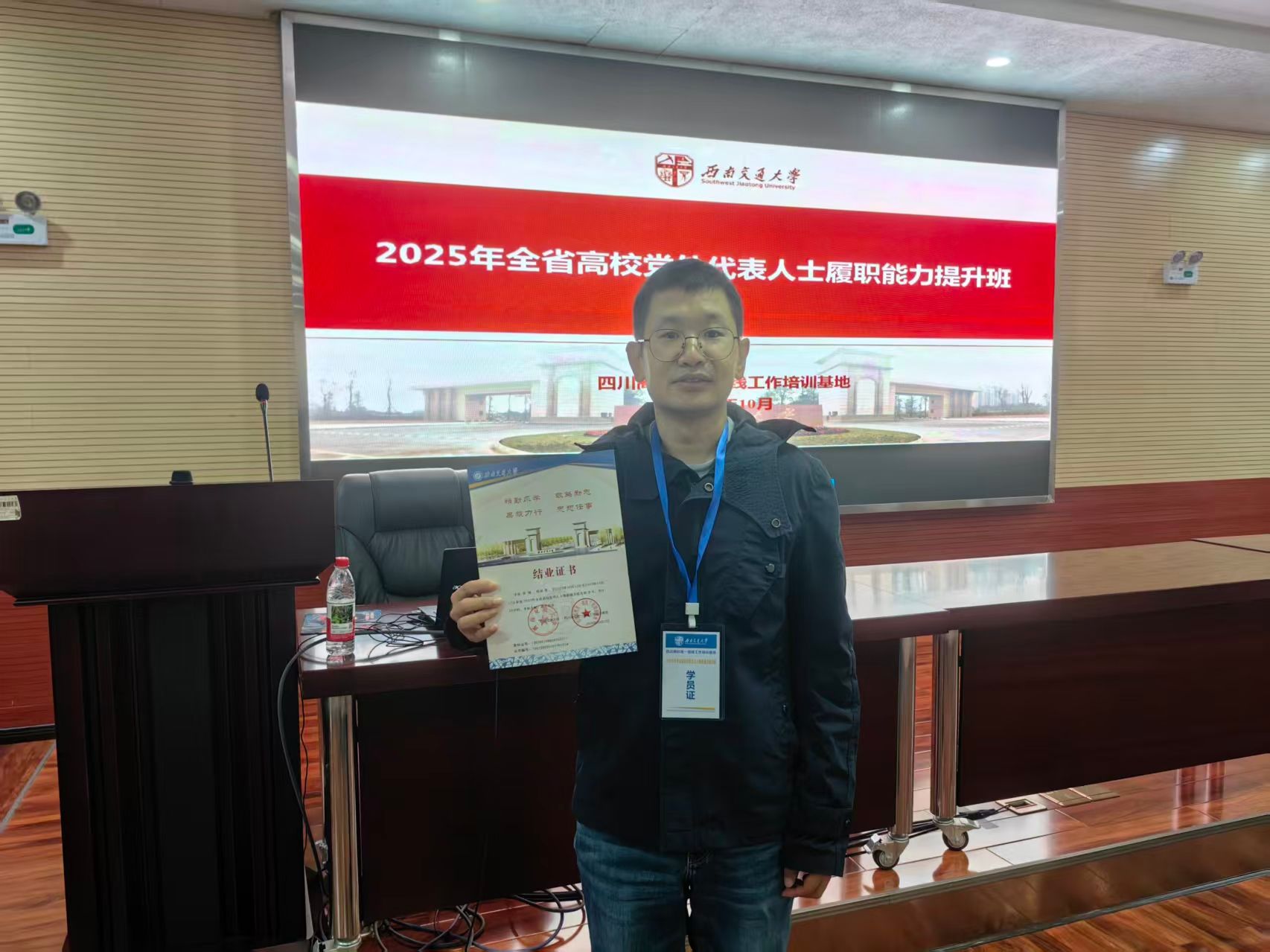 近日,由四川高校统一战线工作培训基地(西南交通大学)承办的 2025 年全省高校党外代表人士履职能力提升班在西南交通大学峨眉校区圆满落幕。西南医科大学基础医学院九三学社社员李翔代表学校参加此次培训,通过系统学习与深度交流,进一步筑牢政治根基、开阔宏观视野、提升履职能力,为更好地服务学校发展和区域卫生健康事业积累了宝贵经验。