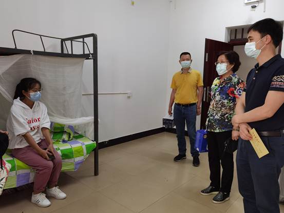 29日,陈平同学顺利出院,基础医学院院长代荣阳、党委书记赵珍先等学院领导到学生公寓慰问陈平,并送去学院班子成员的慰问金。代荣阳院长亲切问候陈平同学目前的身体状况,并诚挚表达了学院对陈平同学的关心;赵珍先书记也表示学院相关领导和老师非常关注陈平的病情,肯定了陈平在疫情期间能够积极乐观地面对疾病,期待她早日康复。