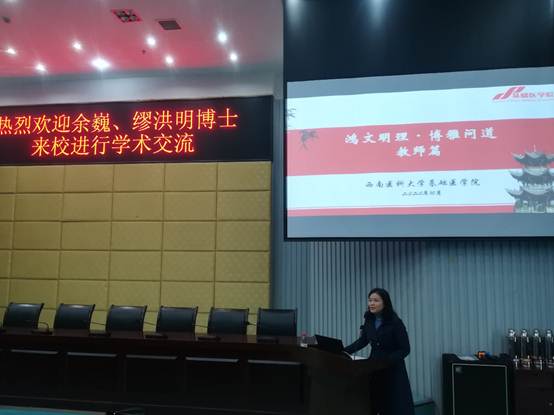 2020年10月15日上午9:00,基础医学院在城北校区第二学术报告厅开展“鸿文明理·博雅问道”教师篇——学术交流活动,活动邀请到复旦大学余巍博士和陆军军医大学缪洪明博士。基础医学院全体博士、科研岗教师、部分无课教师以及研究生参加了学术交流活动,活动由基础医学院副院长曾永秋主持。