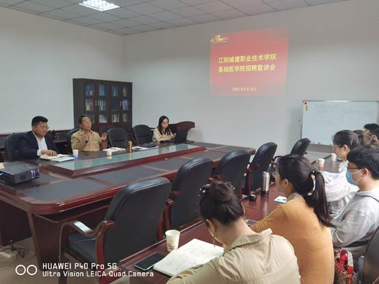 3月16日上午,基础医学院2021届毕业生专场招聘宣讲会在鸿文楼一楼小会议室举行。江阳城建职业学院医药康养学院院长冯志强教授、城建职业学院人事处相关负责人及基础医学院2021届部分未签约的硕士研究生参加了此次招聘宣讲会。会议由基础医学院副院长曾永秋主持。