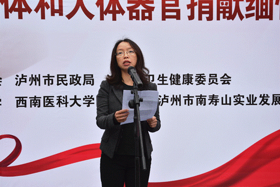 2021年4月2日上午,由泸州市红十字协会主办、西南医科大学及泸州市南寿山实业有限公司承办的“春之生 生命的乐章”——2021年泸州市遗体和人体器官捐献缅怀纪念活动在泸州市南寿山博爱园举行。泸州市红十字会会长李家秀、西南医科大学基础医学院党委书记阳静、遗体器官捐献登记者和捐献者家属及我校教师代表、学生志愿者近百人参加了活动。