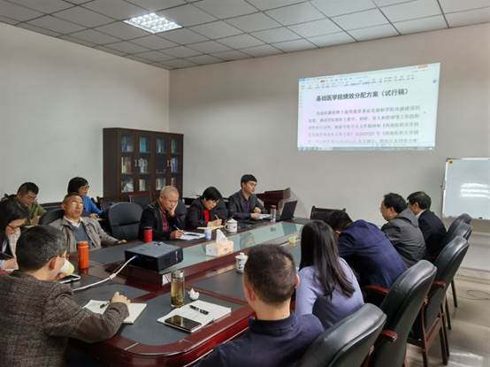 会上,代荣阳简要介绍了学校绩效分配改革方案以及学院制定绩效分配改革方案的目的、思路、原则等内容。随后,参会人员对《基础医学院绩效分配方案(试行稿)》和《基础医学院业绩贡献考核评分细则(试行稿)》进行逐条讨论修订,为保障教学、科研、学科建设和科室日常管理工作的顺利推进提出了建设性意见并达成共识。