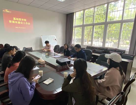 4月21日,基础医学院在鸿文楼一楼会议室召开新媒体建设工作会议。基础医学院新媒体平台建设项目负责人,党政办、教务科、学科建设办、各学工办负责人,科普团队负责人,学生媒体宣传团队负责人参加了会议。会议由基础医学院党委副书记、纪委书记黄钰主持。