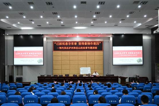 6月1日,基础医学院联合离退休处在城北校区第二学术报告厅举行“已摈忧患寻常事 留得豪情作楚囚”——恽代英在泸州和忠山的故事专题讲座。讲座由学校关工委常务副主任(主持日常工作)尹杰霖主讲。离退休处副处长李建英,关工委秘书长、办公室主任邬明辉,基础医学院党委副书记、纪委书记黄钰,离退休处综合科科长杨潇,基础医学院各年办团总支书记及学生代表100余人参加本次讲座。讲座由基础医学院2020级临床办副主任阳永连主持。