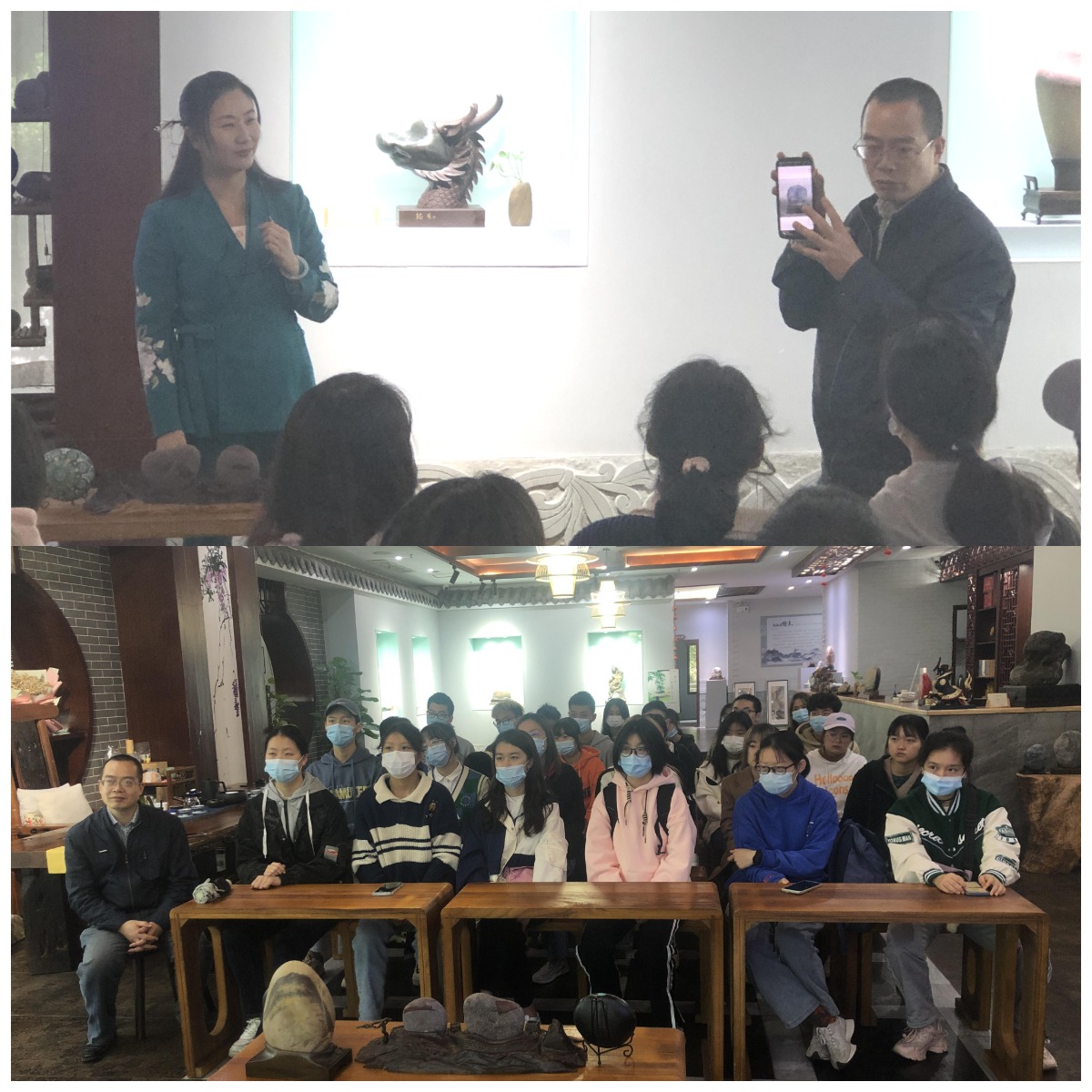 本次活动分为两部分。第一部分,博物馆的讲解员朱七七为大家作了长江奇石的主题宣讲《大自然的杰作,母亲河的艺术》。讲座中,朱七七首先从长江奇石文化的溯源、长江奇石的文化价值、长江奇石文化的发展现状等三个部分对同学们进行长江奇石文化的知识普及;然后分享了自己大学毕业后投入长江奇石文化的经历和故事,表达了对长江奇石文化的钟爱与热情;最后介绍了长江奇石的鉴赏标准、命名的文化要求和赏石的经验。第二部分,周云刚老师带领学生观赏博物馆中所珍藏的长江精品奇石,边参观,边给同学们讲解长江奇石的种类、特色和鉴赏实战经验。