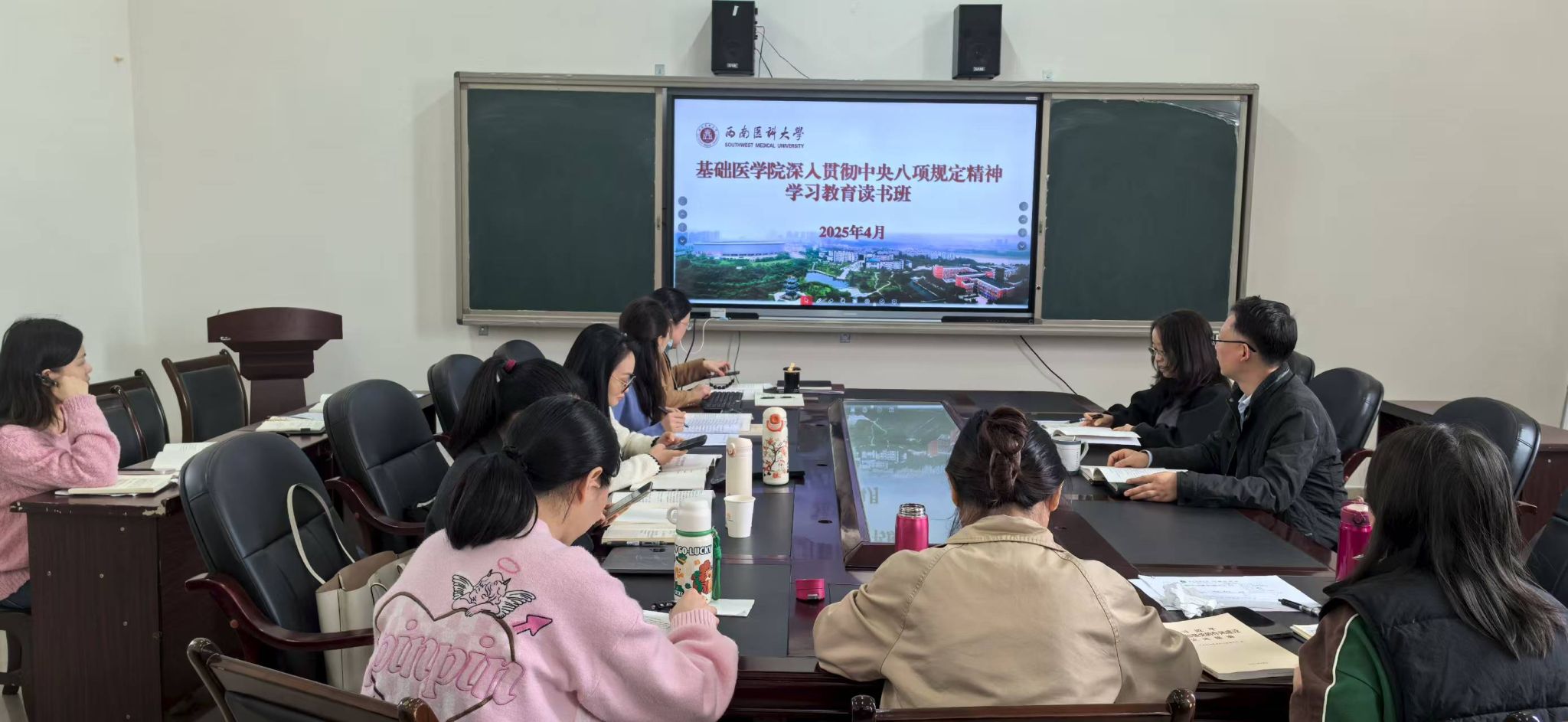 近日,基础医学院党委举办为期三天的深入贯彻中央八项规定精神学习教育读书班。学院处科级干部、两委委员参加,读书班由学院党委书记阳静主持。